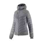 Jaqueta amb caputxa fixa embuatada per a dona confeccionat en teixit de niló repel·lent a l’aigua i polièster. Amb farciment Megatherm de tacte ploma excepcionalment eficaç tèrmicament. Coll alt i tancament amb cremallera amb solapa interior i protector per a la barbeta. Màniga llarga i dues butxaques laterals amb cremallera. – Teixit exterior: Nycire, teixit de Niló tacte ploma superligero i amb una capa interior repel·lent a l’aigua. – Farciment: Aïllant Megatherm tacte ploma excepcionalment eficient tèrmicament. Resistent a la rentada i hipoal·lergogen. Talles XS a XXL